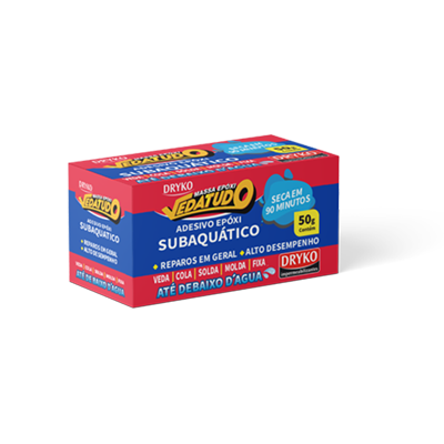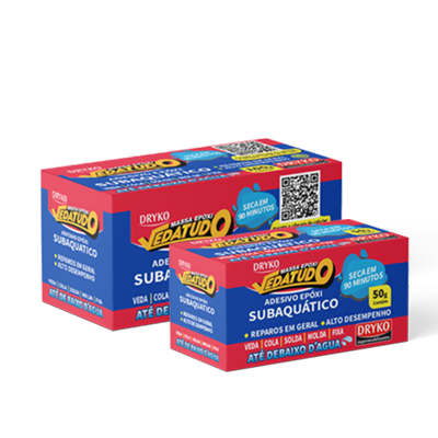 DRYKO MASSA EPÓXI VEDATUDO é uma massa adesiva epóxi bicomponente, subaquática, versátil, utilizada em reparos de áreas secas ou submersas e em superfícies horizontais e verticais, com alto desempenho.