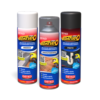 Spray impermeabilizante com acabamento emborrachado que penetra nas aberturas para reparos de vazamentos, trincas, e fissuras, estancando a passagem de água rapidamente após a cura. Produto anticorrosivo com resistência a ferrugem e rápida secagem. Aceita pintura e possui ótima resistência U.V.