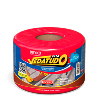 Fita autoadesiva multiuso à base de asfalto protegida com filme na cor terracota que permite sua exposição a intempéries e aos raios solares, para solucionar problemas de gotejamento e vedações.