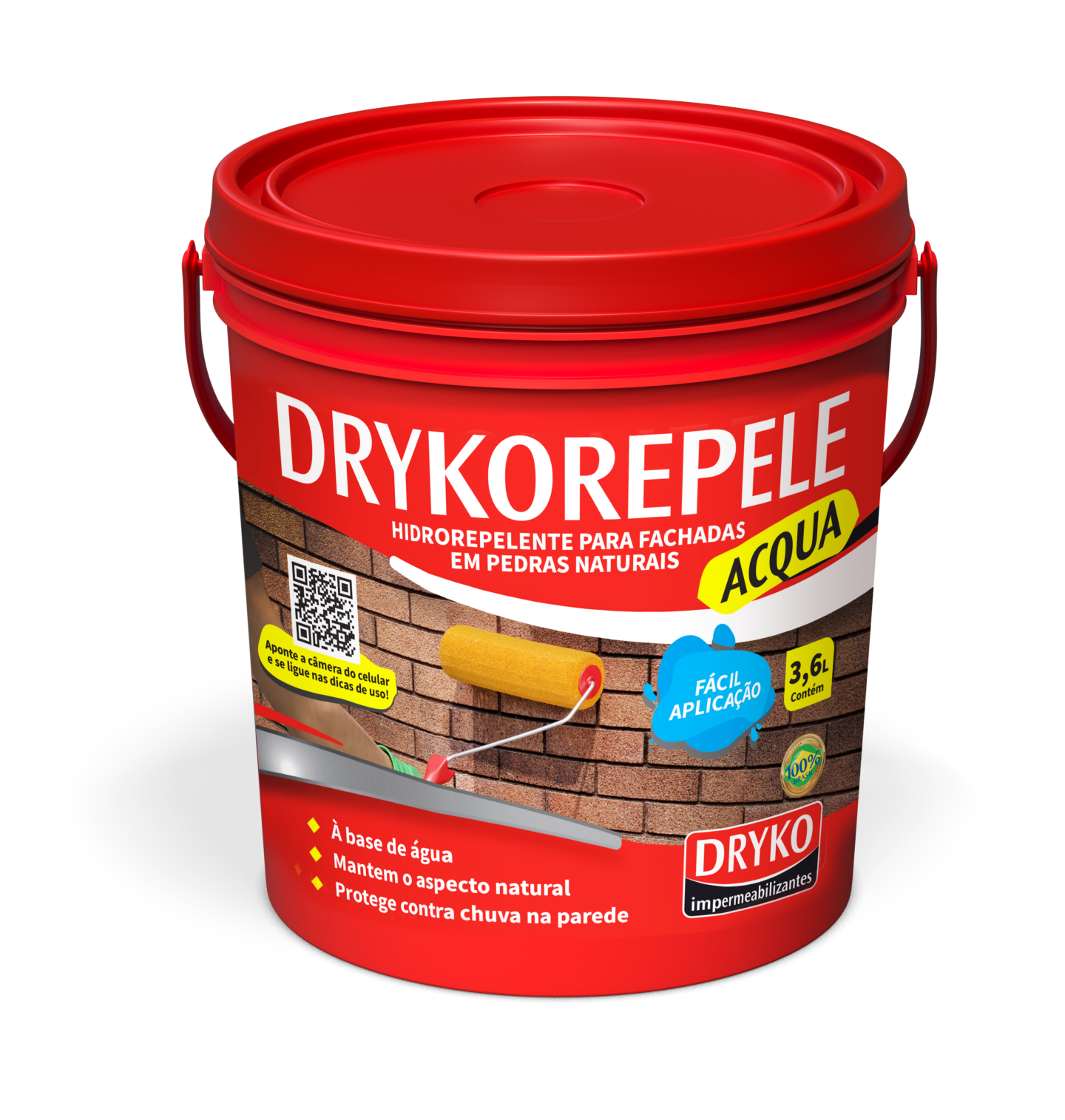Com o substrato seco aplique a 1º demão do DRYKO HIDRORREPELENTE ACQUA até apresentar superfície totalmente úmida, sem excesso e em camadas finas.