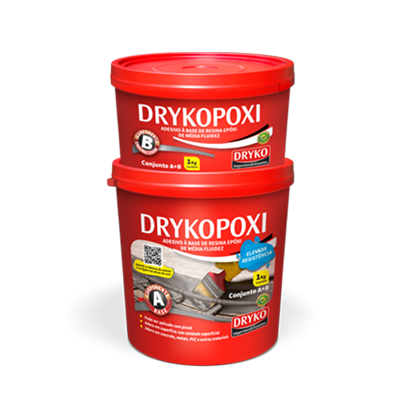 Aplicar o produto com auxílio de espátula ou pincel em camada uniforme e sem excesso com espessura média de 2 mm. O material a ser colado deve entrar em contato com DRYKOPOXI em até 2 horas, quando o produto ainda apresenta seu estado pegajoso.