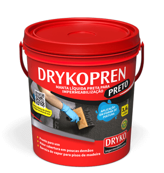 Com o substrato seco aplique a 1º demão do DRYKOPREN PRETO diluída em 10% de água e aguarde a secagem de 6 a 12 horas para aplicação da demão seguinte.