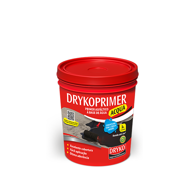 Com o substrato seco aplique em única demão do DRYKOPRIMER ACQUA puro e aguarde a secagem de 6 a 8 horas para aplicação do sistema de impermeabilização ou vedação asfáltico.