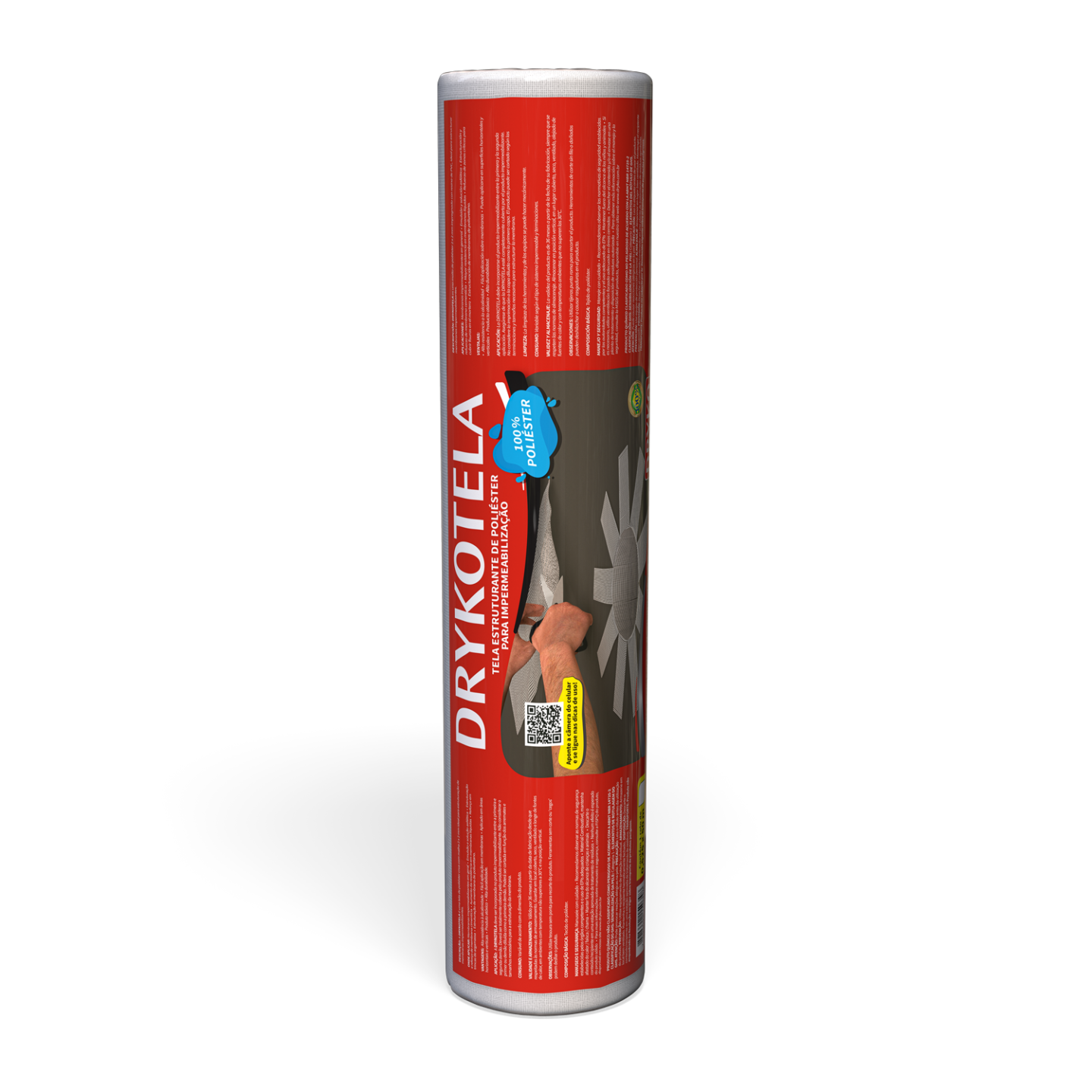 A DRYKOTELA POLIÉSTER é uma tela de poliéster crua com malha 2×2 mm, ideal para estruturação de produtos impermeabilizantes.
