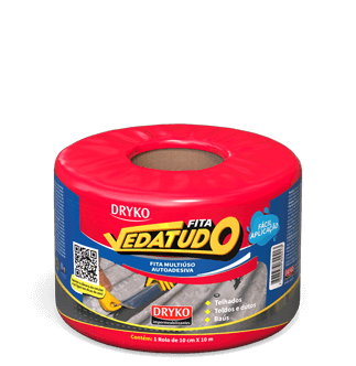 Fita autoadesiva multiuso à base de asfalto modificado, autoprotegida com filme de alumínio que permite sua exposição a intempéries e aos raios solares, sendo de fácil aplicação, na qual proporcionam medidas imediatas para solucionar problemas de gotejamento e vedações.